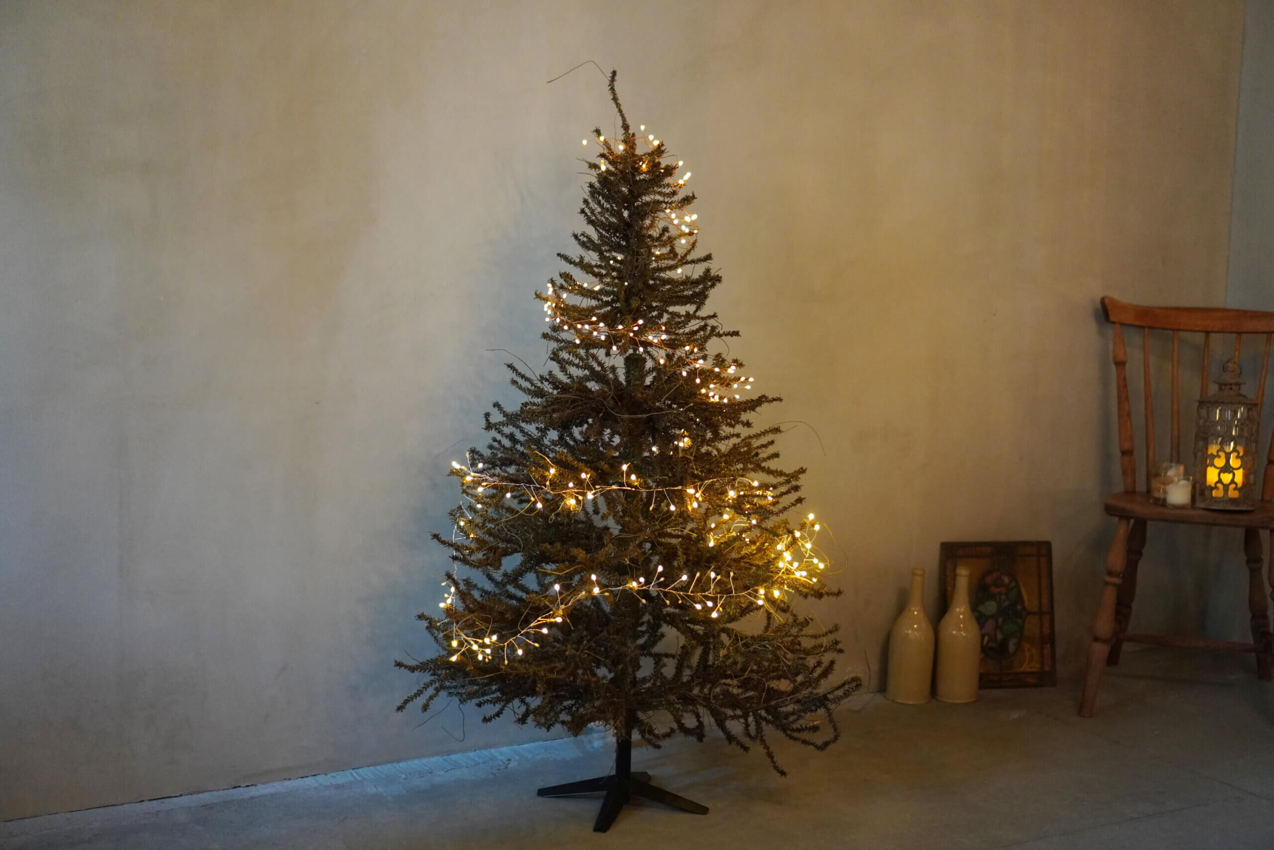 くすんだグリーンの枝葉と自然な隙間が、リアルなモミの木のような表情を生み出します。