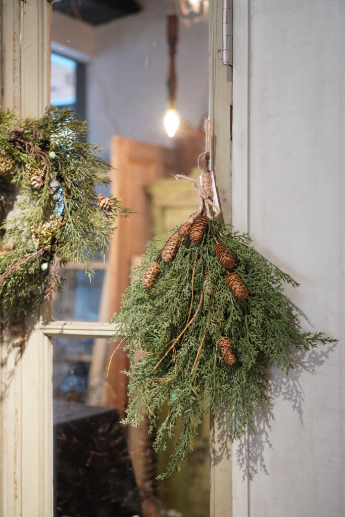 ナチュラルな素材感のフェイクグリーンスワッグ。