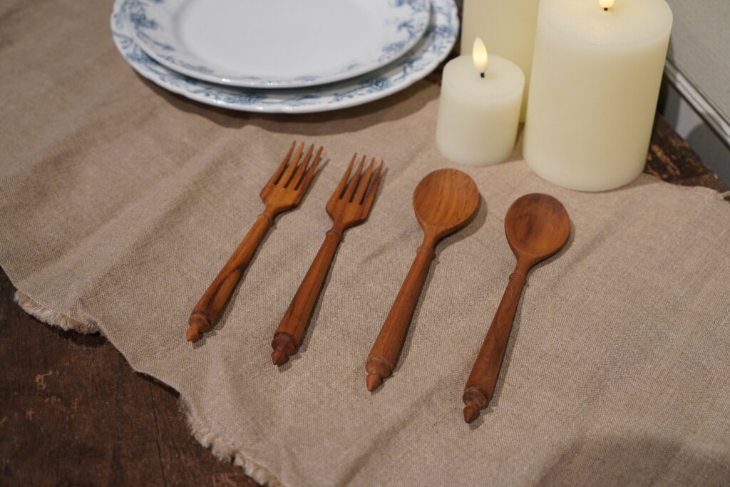 天然チーク材の風合いが魅力のブランチカトラリー。